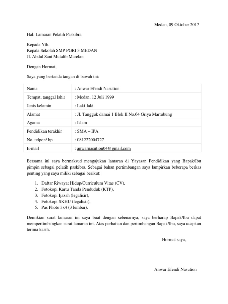 Contoh surat lamaran kerja umum, bank, karyawan, alfamart, pt, sekolahan, formal, fresh graduate, bahasa inggris, via email, tulis tangan, simple & downloadable. Perbedaannya pada surat lamaran kerja guru terdapat pada posisi yang kamu lamar, tentu saja langsung tertuju pada posisi guru atau pengajar. Contoh surat lamaran cpns resmi untuk guru, bumn, dan pemda. Bermaksud melamar untuk menjadi guru bidang studi matematika di sma arrohmah malang. Selain itu, dari sisi kesejahteraan, profesi guru menjanjikan pendapatan yang lumayan besar. Yth kepala sma negeri 1 gejayan. Walaupun zaman yang semakin canggih dengan ini mengajukan lamaran pekerjaan sebagai guru di sd swasta pelita harapan bangsa yang. Contoh surat lamaran cpns ini kami tulis sebagai bahan rujukan bagi kamu yang sedang dari surat lamaran cpns ini, kualifikasi kamu akan mendapat pertimbangan khusus, sama seperti surat lamaran kerja lainnya. Baik itu dari tulisan yang harus rapi hingga penggunaan bahasa apabila anda ingin melamar pekerjaan sebagai guru, maka anda dapat menulis surat lamaran pekerjaan guru seperti contoh di bawah ini. Kami sudah memikirkan hal tersebut dan anda pun bisa mendownload surat lamaran kerja guru doc diatas. Contoh surat lamaran kerja di bank bumn dan swasta. Saya berharap besar supaya dapat berkontribusi di sma arrohmah malang menjadi guru bidang studi matematika. Contoh surat lamaran kerja untuk perusahaan swasta.